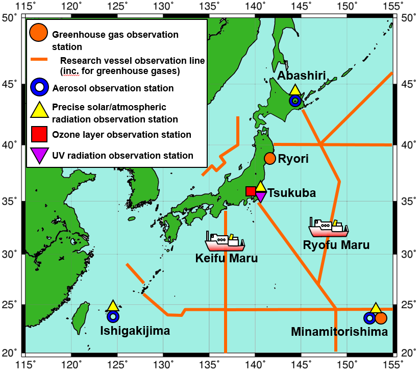 Atmospheric and Marine Environment Monitoring Data include all global environment-related observations made by the Japan Meteorological Agency (JMA). These data include measurements of atmospheric and marine greenhouse gases, ozone depleting substances, the ozone layer, ultraviolet radiation, aerosols, solar radiation, precipitation and dry deposition, and marine pollution. |