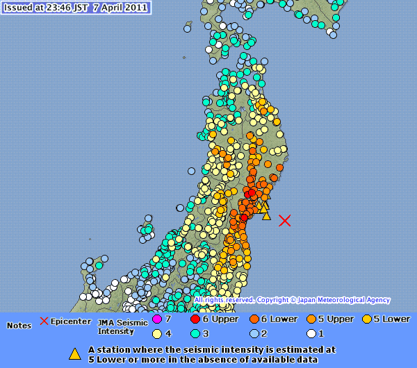 | Date and Time: | 7 April 2011 23:32 JST (14:32 UTC) |