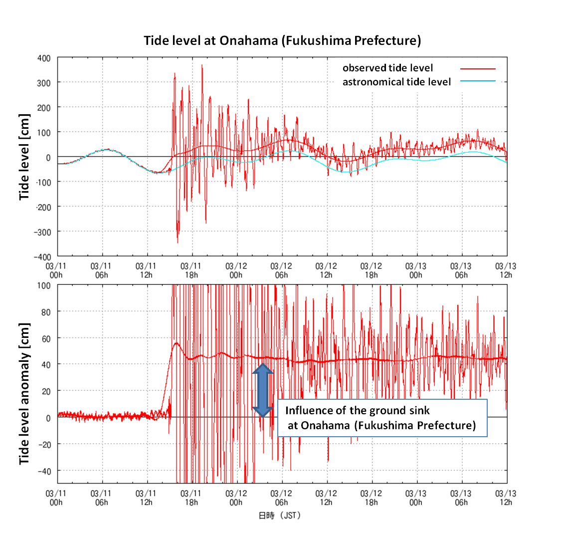Increase of the risk of the submergence and flood during the spring tide associated with the ground sink caused by the 2011 Great East Japan Earthquake |