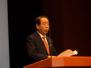 Mr Tokio Kanou, Senior Vice-Minister of the Ministry of Land, Infrastructure, Transportation and Tourism gave an opening address in the public symposium. (8 July 2009) |