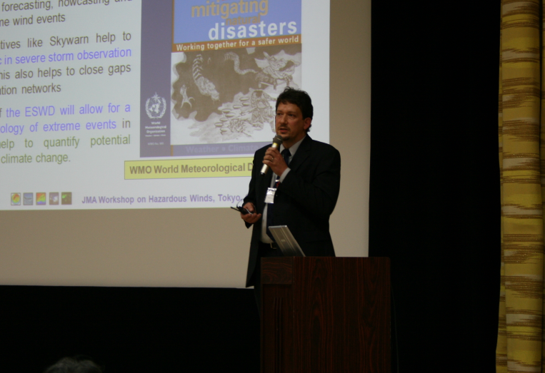 Japan Meteorological Agency (JMA) held the International Workshop on the Hazardous Winds Associated with Severe Storms in Tokyo, Japan from 9 to 11 January 2008, including the public symposium on 11 January, under the auspices of the Ocean Policy Research Foundation.