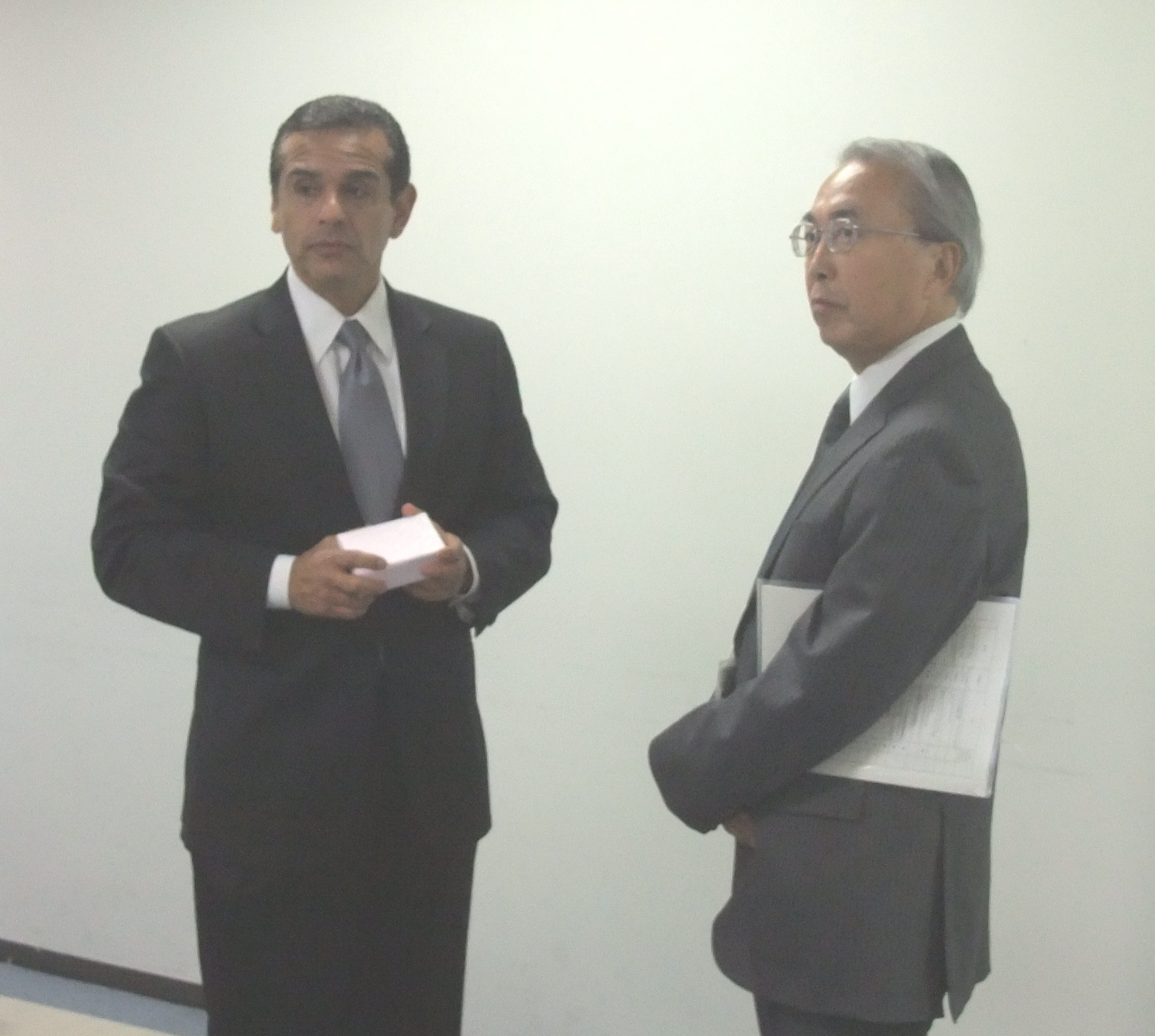 Mr. Antonio R. Villaraigosa, the Mayor of the City of Los Angeles (left), Dr. Mitsuhiko Hatori, the Director-General of JMA (right).