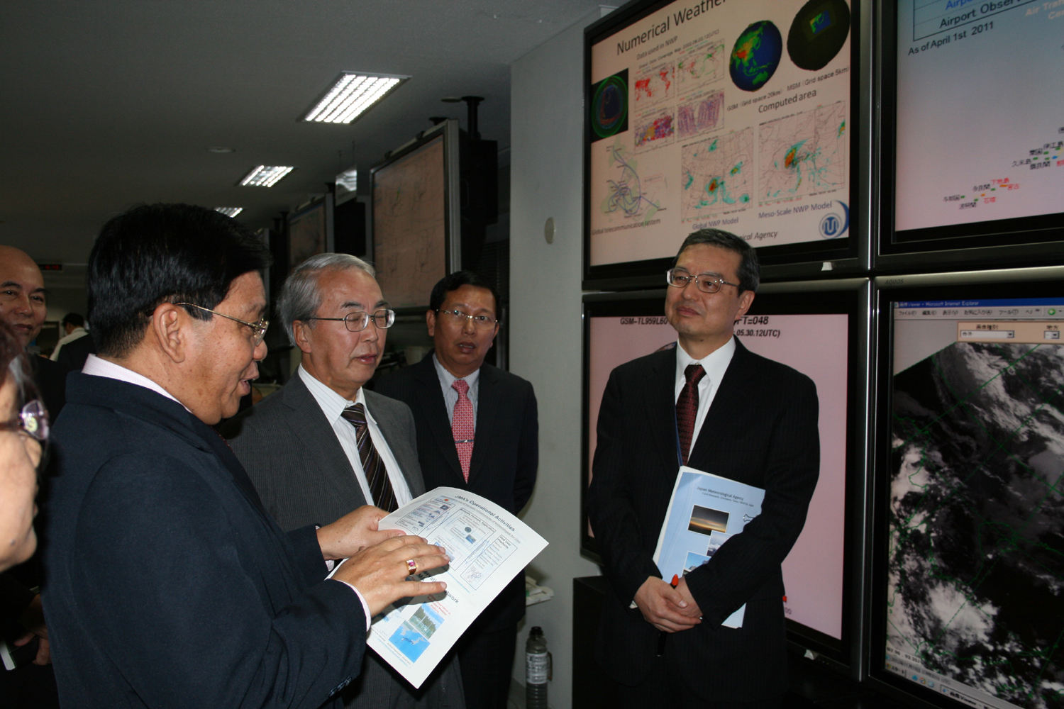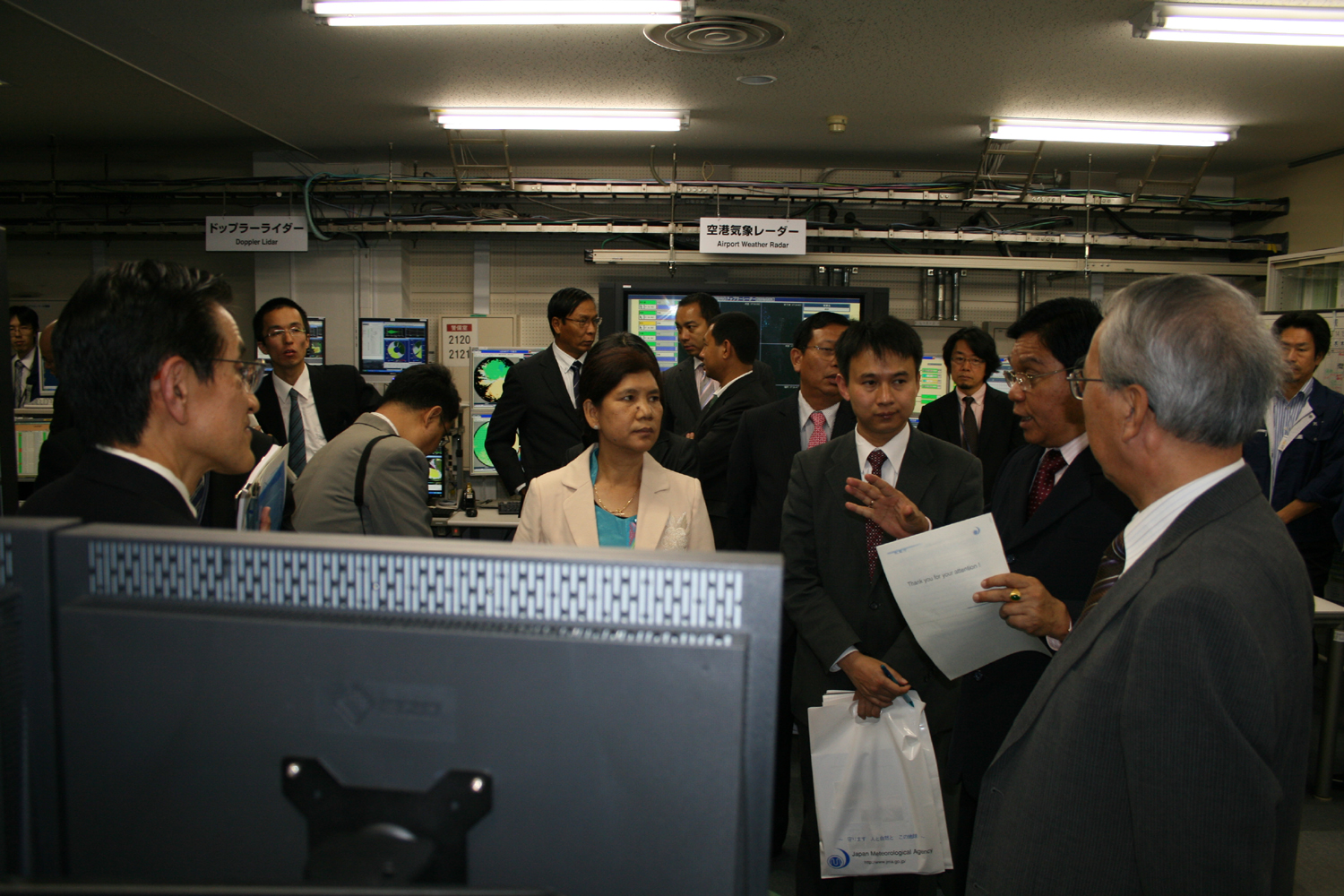 The party then observed operational centers of JMA, and was informed of JMA's state-of-the-art services on earthquakes & tsunamis, weather observations and weather forecast by executives of JMA.