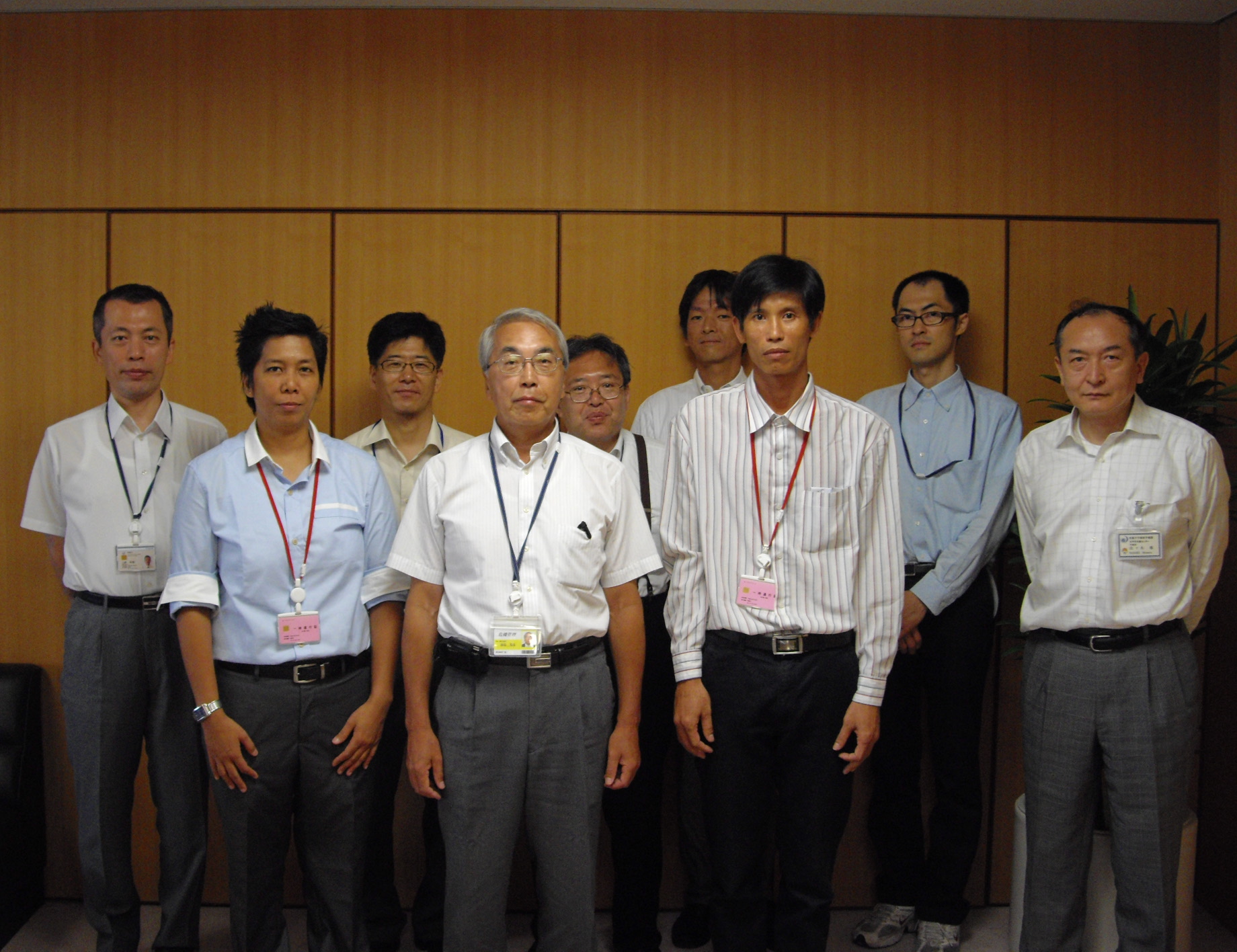 Dr. Hatori is shown between Mr. Ngo Hai Duong (right) and Ms. Connie Rose S. Dadivas (left) with National Typhoon Center staff (18 July, 2012, Director-General's office).