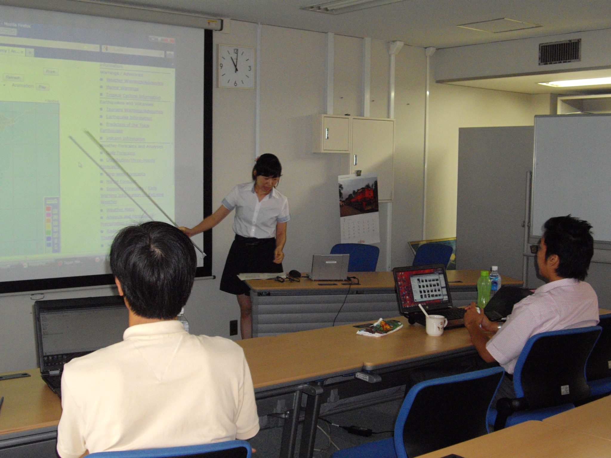 This year, two forecasters - Mr. Ngo Hai Duong (from Viet Nam) and Ms. Connie Rose S. Dadivas (from the Philippines) - visited JMA's Headquarters from 18 to 27 July, 2012, to participate in the 12th Typhoon Committee Attachment Training. The information covered included the following areas: