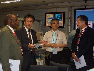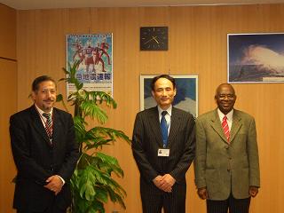 Dr. Buruhani S Nyenzi (Director of the Climate Prediction and Adaptation Branch of the World Meteorological Organization, WMO) and Dr. Abdalah Mokssit (Deputy Director-General of the Moroccan Meteorological Service, DMN) dropped in at JMA to exchange views on the role of WMO and National Meteorological and Hydrological Services (NMHSs) in Global Climate Change.