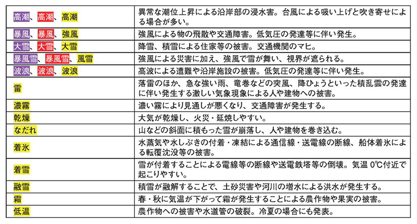 ○防災気象情報の種類