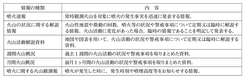 噴火警報や上記の予報のほか、火山現象に関する情報を発表することにより、火山活動の状況等をお知らせしています。
