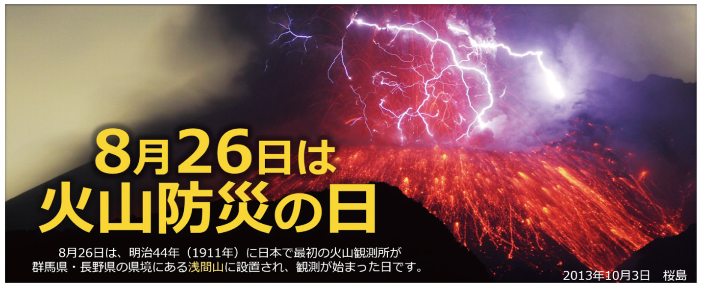 「火山防災の日」として定められた8月26日は、日本で最初の火山観測所が明治44年(1911年)に群馬県・長野県の県境にある浅間山に設置され、火山観測が始まった日です。