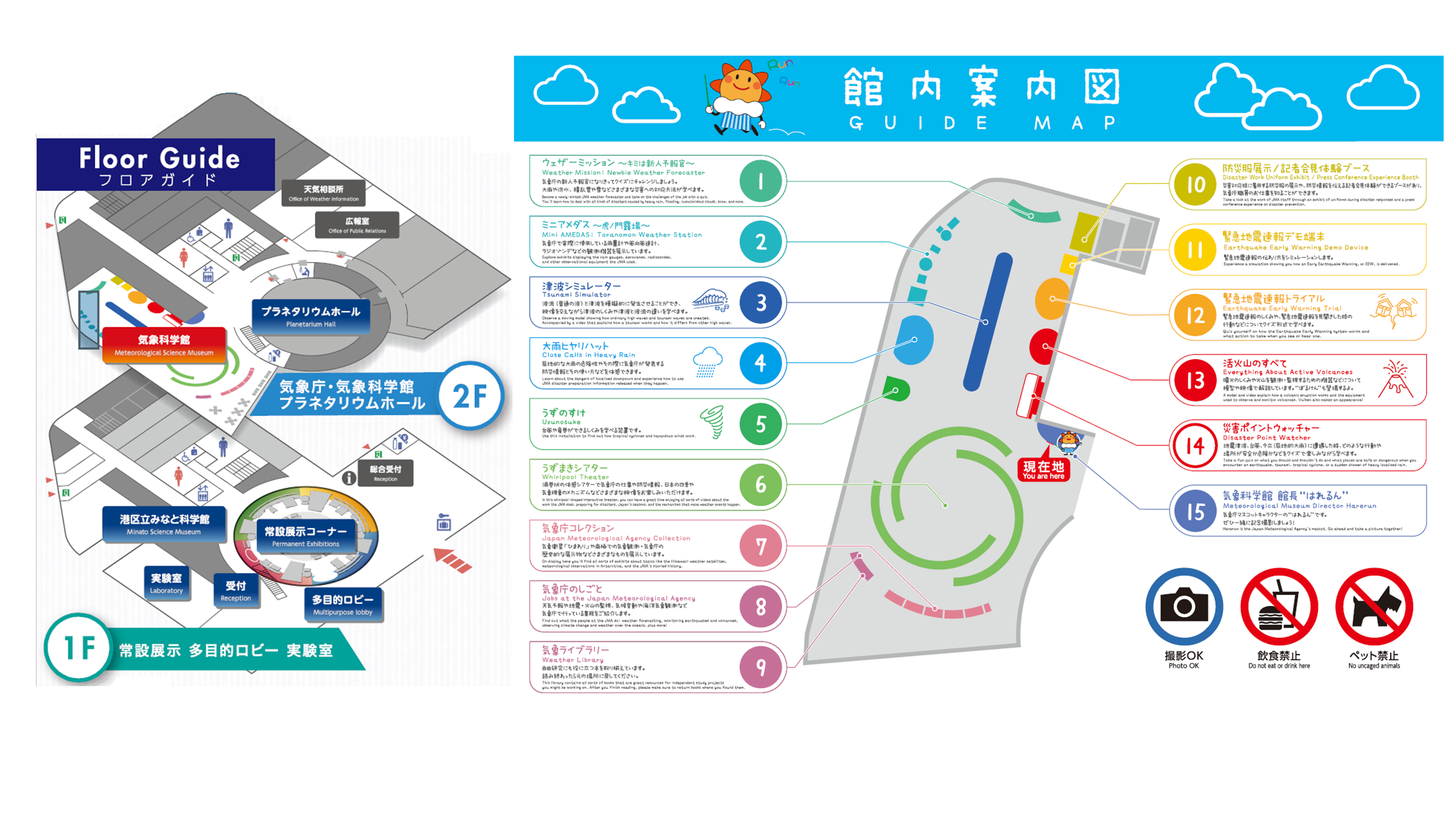 気象科学館では、気象庁の仕事をいくつかのテーマに分け、それらに関連したコンテンツを展示しています。